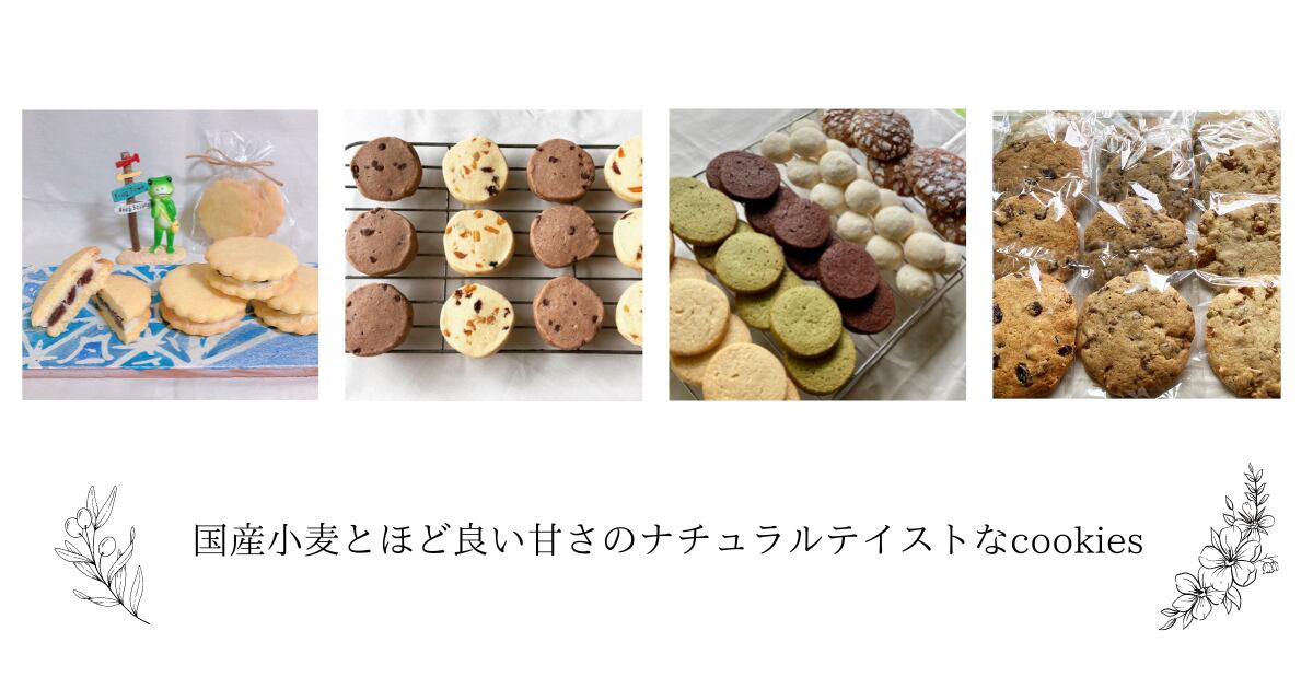 丁寧に焼き上げた優しい味わいの手作りクッキーです。 主な原材料:北海道産小麦粉、北海道産バター、沖縄県産きび砂糖など。 〜今回のアソートクッキーはこちら〜 ○ドロップクッキー(コーヒーチョコ)×2 ○シークワーサークッキー(3個入) ○ナチュラルクッキー チョコ(2個入) プレーン(2個入) ○いもスティック(紅芋/黄金芋)20本 ○フラワークッキー プレーン&シナモン ○スノーボール(3個入) ○チョコチップビスケット(2個入) ○濃厚ショコラ×2 賞味期限:発送日より2〜3週間程度。 発送日:ご購入後、製造に入り5日以内を目安に発送します。 配送は、緩衝材を入れ割れに備えておりますが、焼き菓子という性質上、配送中に割れる場合がございますので、ご了承ください>_< 配送料:全国一律500円。